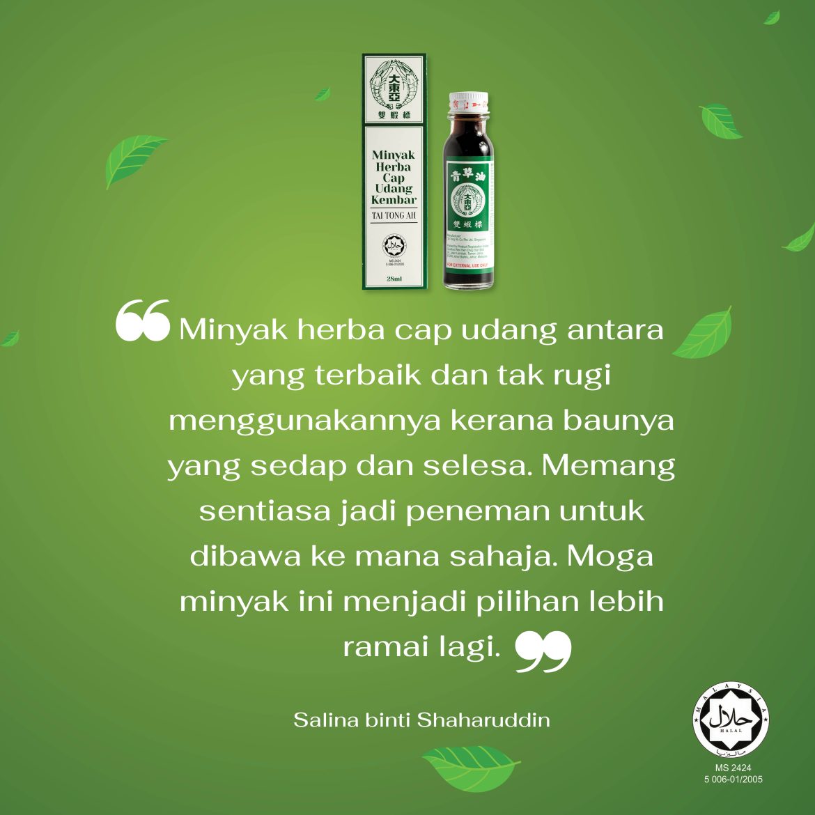 Minyak Herba Cap Udang diperbuat daripada bahan-bahan semula jadi yang bersih dan selamat. Sebab itu ianya disukai ramai, terutama baunya yang amat disenangi 🏥💚. Ia cepat melegakan kegatalan dan luka-luka kecil serta diyakini halal.