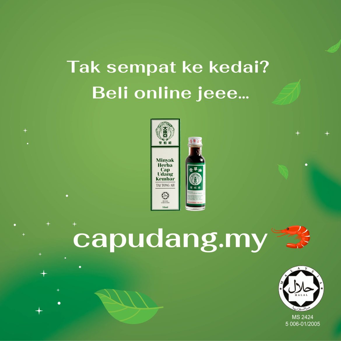 Beli je online! Klik link dan Minyak Herba Cap Udang akan sampai terus ke pintu rumah anda. Cepat, mudah & selesa.