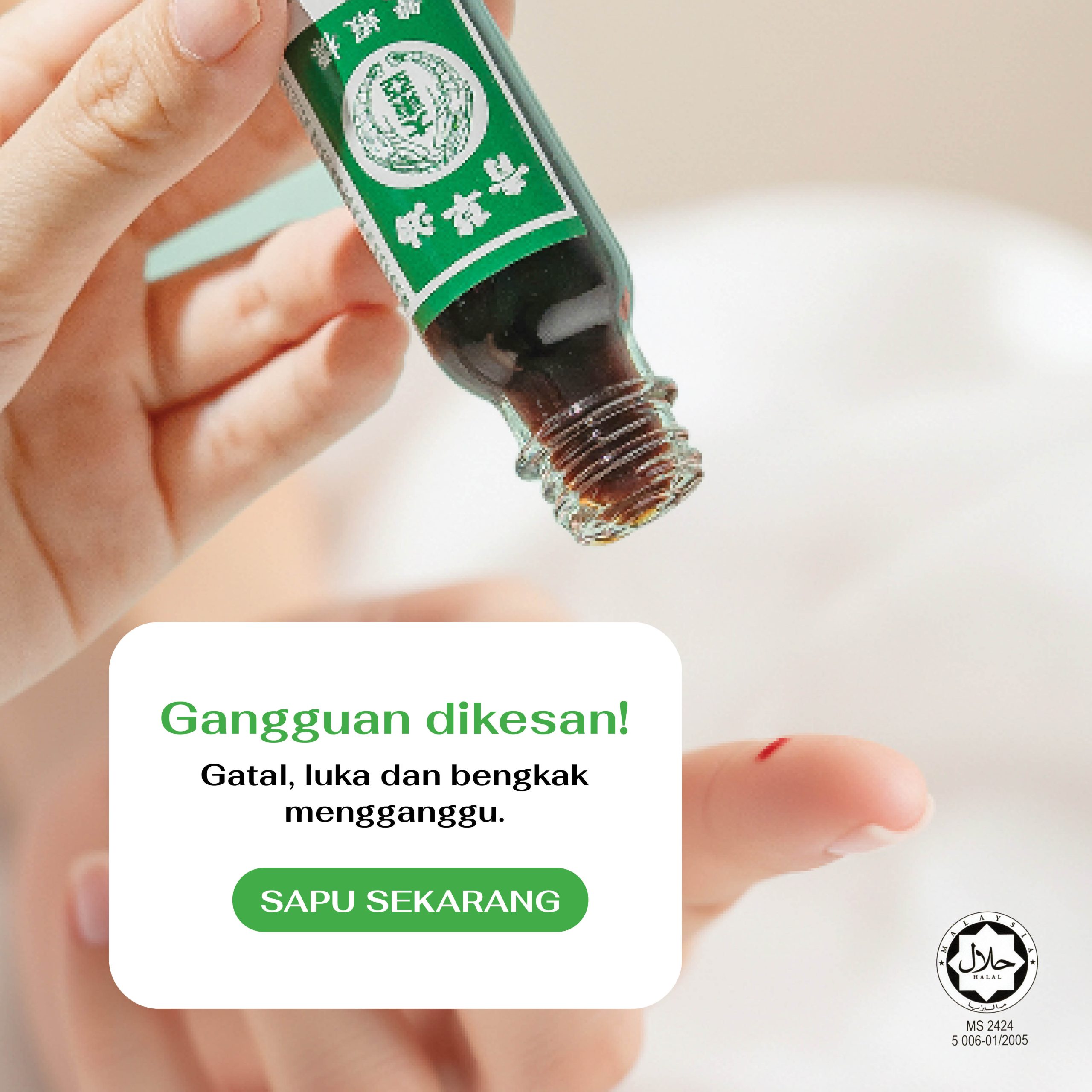 Luka kecil, gatal atau bengkak… apa jua gangguan, pastikan aktiviti anda berjalan lancar. Minyak Herba Cap Udang sedia membantu! Cepat lega, kembali beraksi!