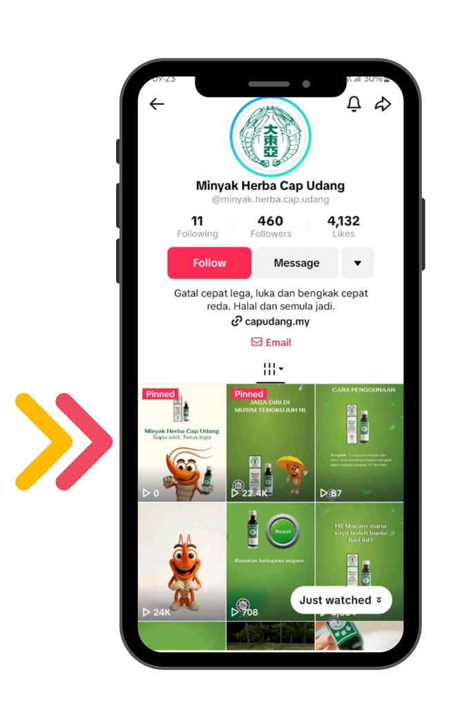 4.1 Mengikuti akaun TikTok rasmi Minyak Herba Cap Udang.