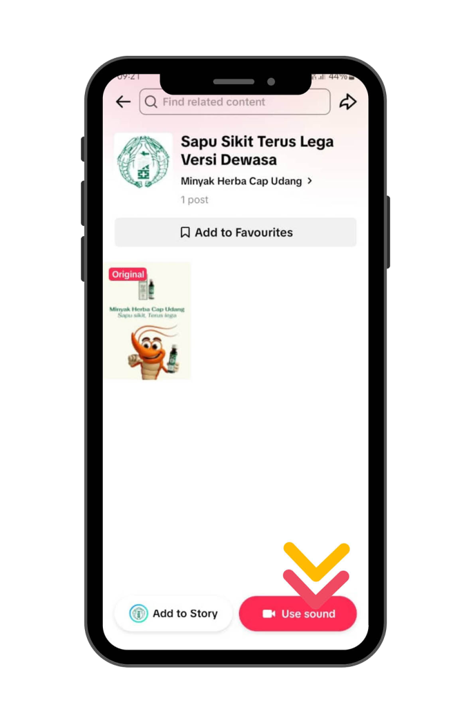 4.2 Menggunakan sound rasmi pertandingan yang disediakan melalui video rasmi di akaun TikTok Minyak Herba Cap Udang.